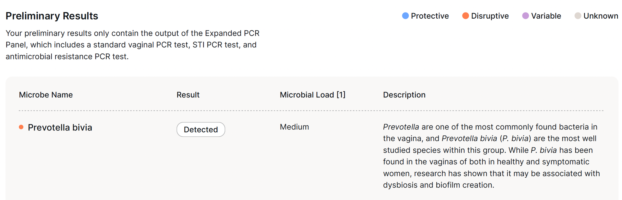 Separately, on the microbiome front, I received the preliminary results back from my Evvy Vaginal Microbiome test; those results only found one strain (Prevotella bivia) present in the sample. I'm starting to use the VagiBiom vaginal suppositories with the intent to start "seeding" the canal with healthy Lactobacillus strains. P. bivia is categorized as disruptive and has been associated with dysbiosis, so introducing Lactobacillus through VagiBiom is the first step toward shifting that balance.